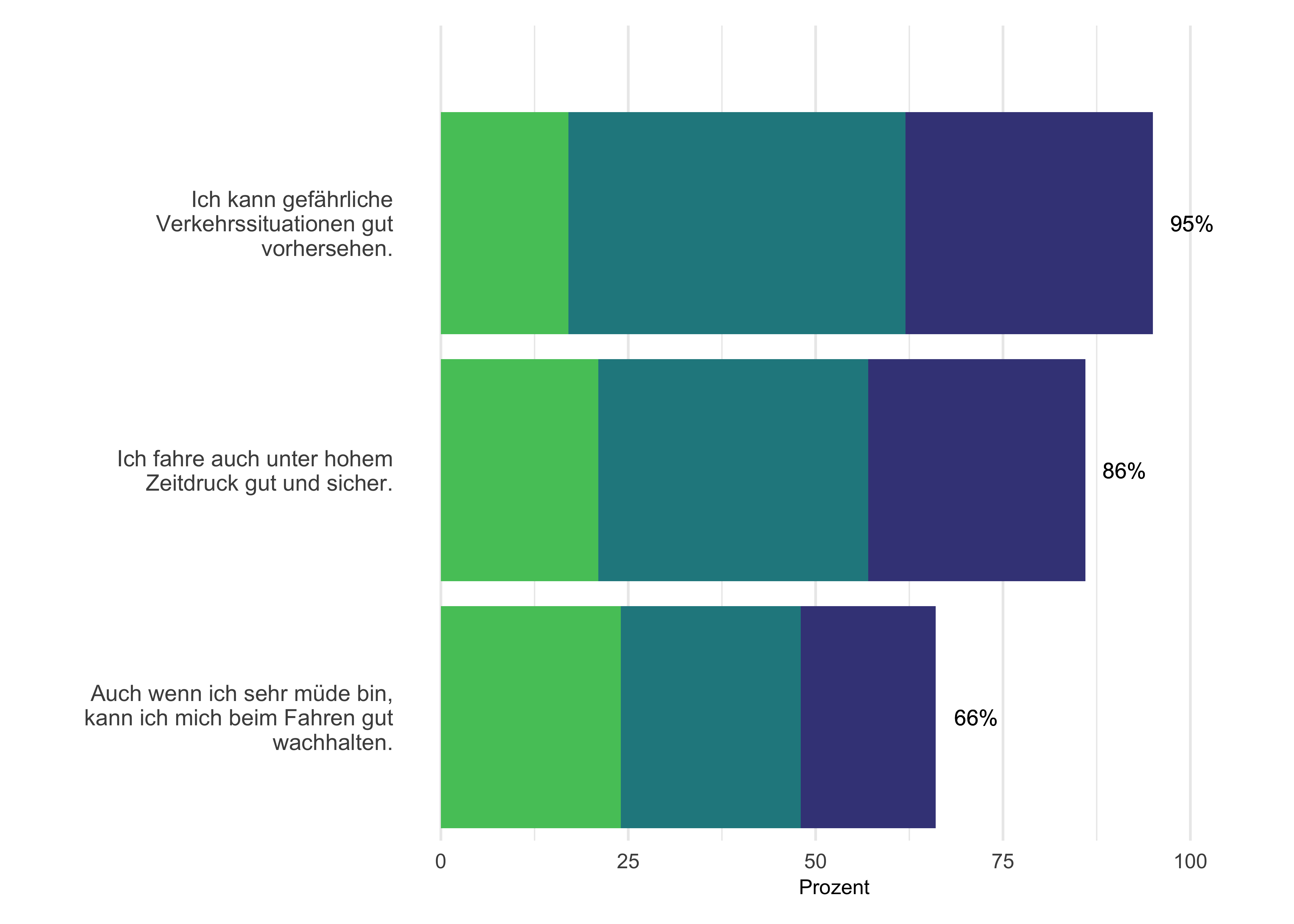 86% sagen, dass sie auch unter hohem Zeitdruck gut und sicher fahren